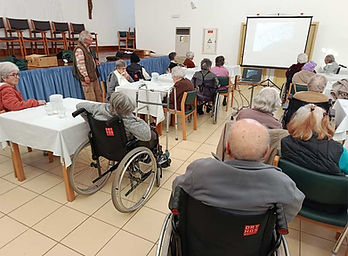 Cerca de 40 utentes e funcionários do Centro Social de Santa Bárbara de Nexe assistiram ao filme "Escritos na Paisagem", que interpreta a Rota dos Poços dos Gorjões, projeto de residência artística de 2023. Alguns dos seus utentes foram protagonistas dos testemunhos recolhidos na altura e os ainda vivos puderam reconhecer-se nas imagens.